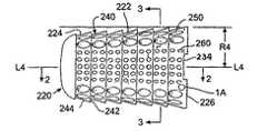 図1Aを参照するに、移植片220は骨の成長を促すために椎骨に対して不規則表面を提示する多孔質の外表面238を有する。外表面238はまた融合促進物質を保持することができ、融合過程で骨に係合する増大した表面積を有すると共に、安定性を与える。外表面238及び/又は移植片全体は、融合促進剤物質を保持し、及び/又は骨の内方成長を促し、及び/又は融合過程で骨に係止するような、他の任意の多孔質材料又は粗化表面を有してもよい。移植片220はさらに、ヒドロキシアパタイト化合物、骨生成蛋白質、骨形態形成蛋白質のような生活性融合促進物質で被覆されていてもよい。移植片220はむくのものでも良いし、中空あるいは部分的に中空のものでもよい。  Referring to FIG. 1A, the