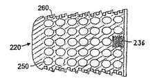 図2を参照すると、移植片220の断面が示されている。移植片220は移植片220を貫通する孔250と移植片の表面に形成された凹所260を有する。凹所260は孔250に通じていてもいなくてもよい。好ましい実施例では孔250の直径は0.1〜6mm、好ましくは2〜3mmである。孔250と凹所260はほぼ円形であるが、目的に応じて任意の寸法、形状及び配置を有することができる。  Referring to FIG. 2, a cross section of the