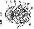更に、基本的に、ストッパ3h、39hと同一の仕方にて形成され且つ、協働する別の対の回転ストッパ及び反対回転ストッパが提供される。上記第二の対の回転ストッパは、一方にて、投与量設定部材39の後側当接領域から軸方向に突き出す回転ストッパ39iであり、また、他方にて、後側平行移動ストッパ11cのストッパに向けた当接領域から投与量設定部材39に向けて軸方向に突き出す反対回転ストッパ11iであるが、これらは、その寸法が小さいため、図9にて見ることはできない。後端位置において、後側対の回転ストッパ11i/39iは、後側平行移動ストッパ11cに対して向けられた、投与量設定部材39による投与量設定動作に応答してピストンロッド4が前進方向に動く可能性を防止する。  Furthermore, another pair of rotation stoppers and counter-rotation stoppers are provided which are basically formed in the same way as the