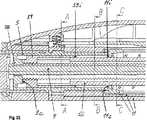 できる多数の製品投与量を投与することを許容する。この実施の形態において、装置は、投与量設定部材を備えることが好ましく、該投与量設定部材は、ピストンが前側及び(又は)後側ケーシング部分に対して前進方向に動き且つ、上記ケーシング部分及びピストンロッドに対して前進方向の反対方向に動いて、前進方向に動くことにより製品の投与量を選択し且つ前進方向に動くとき、ピストンロッドを従動させることができるような仕方にてピストンロッドに係合する。この実施の形態において、駆動要素は投与量設定部材に作用することが好ましい。掛止め係合および掛止めロック部材による該掛止め係合状態の維持および解除は、掛止め係合状態が確立されたとき、投与量設定部材はまたピストンに対し規定された位置に動くことを保証する。この規定された位置は、投与量設定部材の零位置にあることが好ましく、この位置において、駆動要素は投与量設定部材を介してピストンに作用することはできない。In a preferred embodiment, as described above, the device allows for the administration of multiple product doses, each individually selectable. In this embodiment, the device preferably comprises a dose setting member, wherein the dose setting member is such that the piston moves forward relative to the front and / or rear casing part and the casing part and Move the piston rod in a direction opposite to the forward direction with respect to the piston rod, select the product dose by moving in the forward direction and move the piston rod in a manner that can be driven when moving in the forward direction. Engage. In this embodiment, the drive element preferably acts on the dose setting member. Maintenance and release of the latching engagement state by the latching engagement and latching lock member ensures that the dose setting member also moves to a defined position relative to the piston when the latching engagement state is established. Guarantee. This defined position is preferably at the zero position of the dose setting member, in which the drive element cannot act on the piston via the dose setting member.