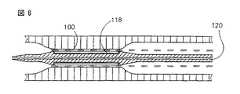 セグメント(102) の、それぞれ、前端(104) と後端(106) における他のコネクター(110) は、時計廻りと反時計廻り方向において巻かれたリンク(112) をもつ。あるいは、巻きコネクター(110) は、血管壁に対するリンク(112) と隣接セグメント(102) の回転変位、そしてより重要には、そのデリバリー・システムのバルーンが、ステント(100) が拡大されるときに、最小化されることを保証する。 The other connectors (110) at the front end (104) and rear end (106), respectively, of the segment (102) have links (112) wound in the clockwise and counterclockwise directions. Alternatively, the wrap connector (110) can be used for rotational displacement of the link (112) and adjacent segment (102) relative to the vessel wall and, more importantly, the balloon of the delivery system when the stent (100) is expanded. To ensure that it is minimized.