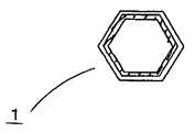 (1)は容器本体で、その高さ(長さ)方向の外周と内周は蛇腹状(2)となっている。このとき図示した容器では高さ方向の全域に亘って蛇腹状になっているが、その途中あるいは末端部はフラットなものとし、ここに商標や商品内容の表示欄としてもよい。