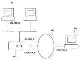プライベートIPアドレスが設定された端末111がルータ114を介して外部ネットワーク113に接続されている場合、この端末111に対しては外部ネットワーク113上の端末112から直接アクセスすることができない。ただし、プライベートIPアドレスとグローバルIPアドレスとを一対一で対応させてアドレス変換を行うNATを用いたものでは、使用できる場合がある。