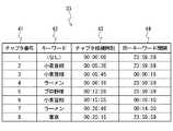 さらに、前記チャプタ情報テーブル補正部(13)は、前記チャプタ候補時刻と前記キーワードに対応する音声が出力される時刻との時間差に基づいてチャプタ設定時刻を特定し、前記チャプタ設定時刻と前記キーワードとを関連付けて前記チャプタ情報テーブル(35)を生成する。