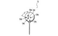 図6を参照すると、以下に説明する如くクラブヘッド71を校正するには、クラブヘッド校正用取付具136を使用する。斯かる取付具136は、磁気ベース138を含み、該ベースは、中央に配置した貫通孔140を画定する。該ベース138に延長部142が接続される。該延長部の面144は、垂直配向ラインvと整列し、該延長部の切欠き146により、ベース138内の孔140が見えるようにされる。面144は、逆反射マーカー148a乃至cを含む。マーカー148a乃至bは、互いに整列し、マーカー148cは、前記マーカーからオフセットされる。