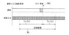 図19は、通信による撮影要求コマンド受信と、CFカード11に記録される画像情報の記録範囲Rhとの関係を表す図である。図7も参照しつつ説明する。記録条件として、センタ4から制御装置2に無線周波数による画像撮影要求があると、ドラレコ本体5の第1CPU13はその信号をコマンド受信する。そうすると、コマンド受信時TR2(トリガ発生時と称す)を基準として最大30秒間の記録範囲にわたって、第2のSD−RAM30にエンドレスで記録されたJPEG変換画像、そのコマンド受信時のGセンサ出力値、位置、時間、実空車および車速情報と、マイク7からの音声情報とをCFカード11に記録する。トリガ発生前の記録時間Tbef秒に、トリガ発生後の記録時間Taft秒を加えた時間(Tbef+Taft秒)が、1イベントにおける記録範囲の合計時間に相当する。たとえば運行データの一つである車速パルスに基づいて求められる当該車両3の速度が、予め定める規定速度よりも大となることをセンタ4が判断すると、センタ4からの画像記録要求が実施される。なお前記トリガ発生に起因するパラメータは、車速パルスだけに限定されるものではない。たとえば定周期記録、急加速、急減速および急ハンドルの少なくともいずれか一方の運行データに基づいて、センタ4から画像記録要求が実施される場合もあり得る。これら複数の運行データを用いることで、センタ4において、乗務員個人の詳細な運転指導を実施することが可能となる。FIG. 19 is a diagram illustrating the relationship between the reception of a shooting request command through communication and the recording range Rh of image information recorded on the