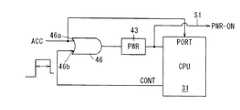 図10は、制御装置2の要部の電気的構成を表すブロック図である。図11は、ドライブレコーダ1の要部の電気的構成を表すブロック図である。図12は、ウォッチドッグパルスが停止または規定の周期で動作しない場合、ハードウェアによりリセットをかける遅延回路を説明する図である。図10に示すように、制御装置2において、論理和回路46つまりOR回路46の入力側一方46aに車両3のアクセサリー電源が接続され、前記OR回路46の入力側他方46bに第2CPU31からの制御信号が供給される。前記OR回路46、第2CPU31間に接続される第2電源部43から、ドライブレコーダ1側に電源オン信号S1が供給される。すなわち図11に示すように、ドライブレコーダ1において、OR回路47の入力側一方47aにアクセサリー電源が接続され、前記OR回路47の入力側他方47bに前記電源オン信号S1が供給される。  FIG. 10 is a block diagram illustrating an electrical configuration of a main part of the