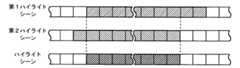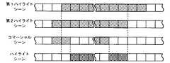 図7は、前記ハイライトシーン判別部5によるハイライトシーンの分類方法を模式的に示した図であり、ハッチングを付したショットがハイライトシーンであり、本実施形態では、第1ハイライトシーンおよび第2ハイライトシーンの双方に分類されたショットのみが最終的にハイライトシーンに分類される。