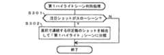 ステップS301では、今回の注目ショットS0が「スロー」シーンに分類されているか否かが判定される。「スロー」シーンに分類されていればステップS302へ進み、今回のショットS0の直前に連続する所定数または所定時間分のショットS0-m〜S0を結合して、これを「第1ハイライトシーン」に分類する。