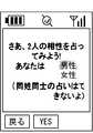 以上のような赤外線通信の間は、上述のように、切換部51aがスクリプト画面の表示を選択しているため、スクリプト56は、上述のS108において、例えば図12(a)〜同図(c)に示すように、実行中の処理の内容等に応じた画像を表示させることができる。例えば相性占いを行うスクリプト56の場合には、S109の最初の実行時には同図(a)の画像を表示させ、その後のS109の実行毎に、同図(b)と同図(c)の画像を交互に表示させる。これにより、花の画像から花びらが一枚ずつ落ちていく花占いの画像を表示させることができ、スクリプト56の処理内容である相性占いに関連した画像をユーザに見せることができる。これにより、赤外線通信中におけるユーザの興味あるいは集中力の維持に寄与することができる。 During the infrared communication as described above, since the switching unit 51a selects the display of the script screen as described above, the script 56 is, for example, shown in FIG. 12 (a) to FIG. ), An image corresponding to the content of the process being executed can be displayed. For example, in the case of the script 56 that performs compatibility fortune-telling, the image of FIG. 10A is displayed at the first execution of S109, and the image of FIG. Are displayed alternately. Thereby, the image of the flower fortune-telling in which the petals fall one by one from the image of the flower can be displayed, and the image related to the compatibility fortune-telling that is the processing content of the script 56 can be shown to the user. This can contribute to maintaining the user's interest or concentration during infrared communication.