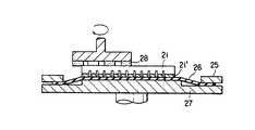 なお、上記溝22は、上記ダイシング用ブレード24を用いて機械的に形成するだけでなく、エッチング等の化学的な方法で形成しても構わない。例えば、異方性エッチングと等方性エッチングを組み合わせることにより、図2に示したような断面形状の溝22を形成できる。すなわち、ウェーハ21の主表面21’上にフォトレジストを塗布し、PEP法等によりチップ分割ライン(ダイシングラインに対応する)上を露出させた後、KOH溶液に浸漬させることによりウェーハ21を深さ方向(ウェーハ21の主表面と直交する方向)に選択的にエッチングする。あるいは、KOH溶液を用いたウェットエッチングに代えて、RIE(Reactive Ion Etching)等のドライエッチング技術の適用も考えられる。例えば、真空度60mtorrでエッチングガスとしてSF6ガスやSF6/CF系混合ガスによりシリコンのみを選択的にエッチングすることが可能である。特に、SF6/CF系混合ガスでは良好な異方性エッチングが可能であり、ウェーハ21の主表面21’に対してほぼ垂直な溝加工が可能になる。その後、溝の底部を等方性エッチングすることにより、図2に示したように底部に曲面を持った溝22を形成する。
