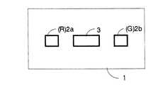 図2は、図1の表示装置を回路記号で表わしたものである。各LEDチップに電流を流すことによりそれぞれの色の光が発光されると、その光は全方位に進行するが、その光のうちの一部が1つのフォトトランジスタ3により検出されることになる。