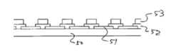 ITO51がパターニングされたガラス基板50上にバンクをフォトリソグラフィーにより、ポリイミド53およびSiO252の積層で形成したものである。バンク径( SiO2の開口径)は28μm、高さが2μmである。ポリイミドバンクの開口は44μmである。これらの画素が70.5μmピッチで配置されている基板である。