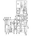 センサから信号を受信する検知論理装置の構成は、既知の方法の場合、バッテリ12に用いられるバッテリ・タイプに応じてさまざまである。検知論理装置の出力から制御論理装置にフィードバック信号が供給され、次に、制御論理装置が、既知のパラメータをセットして、AC/DC電力変換器30を調整する。例えば、リチウム・イオン・バッテリの場合、バッテリ12のしきい値電圧を検知すると、ブロック20(または、後述のように、アダプタ40のブロック50)の制御論理装置は、電力変換器30に制御信号を伝搬する。該制御信号によって、電力変換器30は、バッテリが充電される速度を低下させ、完全な充電状態に達し、この状態が持続すると、充電を中断させる。N金属水素化物バッテリの場合、バッテリ電圧が指定の範囲内であれば、所定のバッテリ温度の変化率によって、制御論理装置20(またはアダプタ40のブロック50)が、同様の制御信号を電力変換器30に伝搬させ、充電レベルの低下が調整されるようにする。リチウム・イオン及びN金属水素化物バッテリの調整は、当該技術において既知のところである。