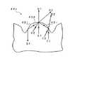 今、上記導光板Aを使用して矢印L1の方向から光供給を行なった場合、前面5からの出射光束の優先伝播方向は、上記したことからθ2 =約63°となる。導光板Aの屈折率が1.5前後であることを考慮すれば、θ2 =63°前後を与える前面5への入射角は、θ1 =35°前後となる。以下、このような優先伝播方向に対応した光線を本明細書では主光線と呼ぶ。ここでは主光線は符号S1で指示されている。