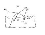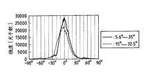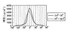 これらのグラフから判るように、出射光束はいずれも指向性を持っており、3例における輝度ピーク(主光線出射角)は、導光板Aでは約63°、導光板Bでは約77°、導光板Cでは約72°となっている。一般的に言えば、光入射面側から見た奥行きサイズが大きくなる程、輝度ピークを与える出射角が大きくなる傾向がある。