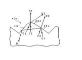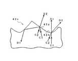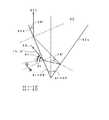 (2)導光板から出射される主光線の周りに角度分布する光線の束(以下、「副光線束」と言う。)の中で、主光線に比して出射角が大きな副光線を第1傾斜面から非対称プリズムシート内に導入し、第2傾斜面で内部反射させた後、更に第1傾斜面で内部反射させてほぼ正面方向に偏向する。