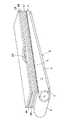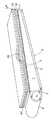 同図を参照すると、符号1は指向出射性の導光板で、光散乱導光体あるいは透明導光体からなる楔形断面を有する光学部材で構成されている。光散乱導光体は、導光機能と内部散乱機能を兼備した周知の光学材料で、例えばポリメチルメタクリレート(PMMA)からなるマトリックスと該マトリックス中に「異屈折率物質」を一様に混入分散させたものからなる。「異屈折率物質」とは、マトリックスの屈折率と実質的に異なる屈折率を有する物質を意味する。