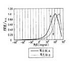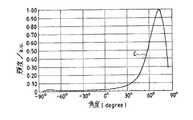 周知の通り、側方から光供給を受けた導光板1の前面5から出射される光は、相当の明瞭さを持った指向性を示すため、一般に指向出射性の導光板と呼ばれている。なお、導光板1の前面5あるいは裏面に強い光拡散性を与えた場合には、導光板1の指向出射性が損なわれることがある。図2及び図3は、3例の導光板A(図2),B(図2),C(図3)について前面5の出射特性を表わしたグラフである。