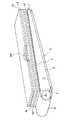 プリズムシート4の内側面を構成するプリズム面は多数のプリズム要素列を有する。これら多数のプリズム要素列の配向方向は、導光板1の光入射面2とほぼ平行である。部分拡大断面図に示したように、各プリズム要素列はV字状の溝を形成する1対の傾斜面4a,4bを有している。