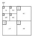 FIG. 9 is a diagram showing a state of band division by discrete wavelet transform in the JPEG2000 compression encoding method.