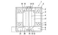 また、ロータの回転軸と滑り軸受との間には第二の圧力室内の流体が均一な圧力分布をもって介在するため、回転軸の潤滑を長期にわたり良好に維持できる。Further, since the fluid in the second pressure chamber is interposed between the rotating shaft ofthe rotor and the sliding bearing with a uniform pressure distribution, the lubricating of the rotating shaft can be maintained well over a long period of time.