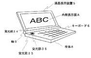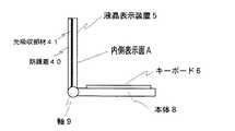 開扉状態では、発光型表示装置と半透過型液晶パネルの双方に情報を個別に表示することが可能であり、用途によっては有利であるが、通常のキーボードを有する情報機器においてはキーボードの配置場所がなくなってしまう。また、発光型表示装置は消費電力が多い。