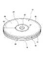 光ディスク10には中心孔22が設けられ、ディスク両面の中心孔22の周囲には、この光ディスク10を回転駆動時にクランプするためのクランプエリア24が設けられている。中心孔22には、図示しないディスクドライブ装置に光ディスク10が装填された際に、ディスクモータのスピンドルが挿入される。そして、光ディスク10は、そのクランプエリア24において、図示しないディスククランパにより、ディスク回転中クランプされる。