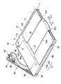 図4に示すように、蓋部材24は、ケース12の幅とほぼ等しい長さおよびケース12内へ挿入可能な厚さを有する細長い偏平な板状に形成された蓋本体38と、蓋本体の一側縁に形成されケースの全幅に亘って延びるフランジ40と、を有している。蓋部材34は、その長手方向一端が、枢軸(図示せず)を介して、ケース12の後端右角部に回動自在に支持されている。それにより、蓋部材24は、枢軸の回りで、閉塞位置と開放位置との間を回動し、ディスク出し入れ口20を開閉可能となっている。