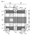 図2の平面レイアウトは左右2個の不揮発性メモリセルMCを最小単位として示しており、一方の信号電極38は双方のメモリセルMCに共通化されてデータ線44に接続されている。他方の信号電極39は左右2個のメモリセルMCに個別化されて夫々別々のデータ線43,45に接続されている。図2より明かなように、メモリゲート電極33とスイッチゲート電極36,37はデータ線とほぼ直角な向きに延在されている。