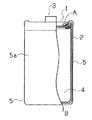 ここで、シュリンクフィルム層5は、たとえばポリ塩化ビニル樹脂、ポリエステル樹脂などを素材とした熱収縮性樹脂フィルムである。そして、シュリンクフィルム層5による外装ラベル被覆は、電池本体1の外周面に、その端面よりも少し突出させてシュリンクフィルムをチューブ状(形)に巻き付け、あるいはシュリンクフィルムチューブを嵌合し、熱収縮させることによって行われる。つまり、チューブ形に巻き付けなどされたシュリンクフィルムは、中央部に引っ張られながら(熱収縮性)、電池本体1外周面を密着的に被覆しする一方、両端面部A,Bの一部も被覆・封装する形態で一体化されている。