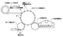 さらに、14は前記絶縁リング11を位置決め装着した電池本体6′をダイヤル型搬送系8から移載され、この移載された電池本体6′を加熱機構部15に移行する移載手段である。ここで、加熱機構部15は、前記電池本体6′のシュリンクフィルムを熱収縮させて電池本体6′の端面外周縁部に絶縁リング11を封装する作用に寄与する。そして、この加熱機構部15は、少なくともシュリンクフィルムの開口端縁部領域を、ほぼ一様ないし同時に加熱できるように、たとえば電池本体6′を回転搬送する方式、温風加熱方式などを備えていることが望ましい。