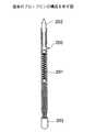図12は、従来のプローブピンの構成を示す図である。図12のプローブピンは、金属管200、コイル状スプリング201、金属片202、及び端子部分203を含む。コイル状スプリング201は金属管200内部に設けられ、このコイル状スプリング201のバネ圧によって、金属片202が図面上方に押圧される。金属片202は、非試験対象物である半導体装置等の外部電極と電気的な接続を行うために設けられ、上記バネ圧が金属片202と外部電極との間の接触圧を生み出す。端子部分203は、半導体装置等を試験する試験装置に接続される。