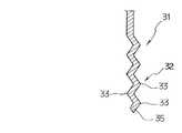 (1)  図19、図20に示すスプロケット31のように、スプロケット31の少なくとも外周部に、半径方向に一定周期で厚さ方向に振幅する環状の波形部32を形成し、波形部32の外周部に歯35を形成してもよい。このスプロケット31においては、図21に示すように、歯35に形成される波形部32の隣接する2つの頂部33を対向するローラリンクプレート12間に位置させることで、スプロケット31とチェーン10との噛合関係が適正状態に維持されることになる。尚、波形部32の形成範囲は、スプロケット31の外縁部を含む範囲であれば任意に設定することが可能である。