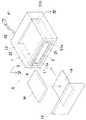 前記装置本体1は、前端面が開放された箱形ケース11と、この箱形ケース11の開口11aを開閉可能に閉塞する蓋体12と、箱形ケース11の外面に装着された前端開放の合成樹脂製箱形外装体13とからなる。勿論、蓋体12で箱形ケース11の前端開口11aを閉塞すれば、前記外装体13の前端開口も開閉可能に閉塞される。