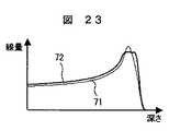 ブラッグピーク拡大装置64は、図21に示すように、下側に複数の棒状部65を相互間に孔部66を形成するように配置して構成されるフィルタ要素75、上側に複数の棒状部67を相互間に孔部68を形成するように配置して構成されるフィルタ要素74を設置している。棒状部65及び67は同じ方向を向いて配置されている。棒状部67は、長手方向の全体にわたって、棒状部65の上に一部分が重なるように設置される。棒状部67の配列ピッチは棒状部65のそれと同じである。このため、孔部66の幅は孔部68の幅に等しい。図示されていないが、各棒状部65の両端部は連結され、各棒状部67の両端部も連結されている。棒状部67の高さ方向の肉厚は棒状部65のそれの2倍ある。棒状部67の一部分が前述のように棒状部65の上に一部分が重なるように設置されるため、棒状部65の上端に段部69が形成され、棒状部67の下端にも段部70が形成される。段部70は孔部66の一部分に覆い被さっている。