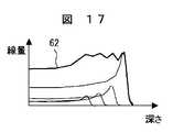 31の患部32に照射される、図16に示すエネルギーが異なる4つのイオンビームは、それぞれ、図18に示すエネルギーの異なる3つのイオンビーム成分を含む。このため、各エネルギーのイオンビームを照射することによって、それぞれのイオンビームで形成されるブラッグピークの幅が図19に細線で示すように増大する。このため、それらのブラッグピークを足し合わせた総放射線量分布は、図19の線63で示すように患部32の深さ方向において一様になる。