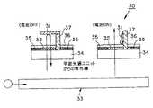 図1に示すように、導光板1上には、紫外線に対して透明な一方の電極(信号電極)2を形成してある。この例としては、電子密度の高いITOなどの金属酸化物、非常に薄い金属薄膜(アルミ等)、金属微粒子を透明絶縁体に分散した薄膜、又は高濃度ドープしたワイドハンドギャップ半導体などが好適である。