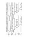 次にCヘッド制御部121の回路構成について説明する。図13はCヘッド制御部121の回路構成を示すブロック図である。尚、通常印刷出力部171においては1行目のノズル列に対応する部分のみが示されている。図14は、Cヘッド制御部121の回路構成による動作波形である。尚、図中の「111」はフラッシングを行うための波形データ信号を示している。図13に示すように、通常印刷出力部171から波形データの基準となるクロック信号(CLK)と、作動許可信号(strb)とがドライバIC80に対して直接入力されている。また、通常印刷出力部171及びフラッシング出力部172からの波形データ信号(sin)と、各行遅延部162からのトリガ信号が1行セレクタ174に入力されている。そして、1行セレクタ174からの波形データ信号がドライバIC80に入力されている。図14に示すように、1行セレクタ174は、各行遅延部162からのトリガ信号がLowのときに通常印刷出力部171からの波形データ信号を、各行遅延部162からのトリガ信号がHighのときにフラッシング出力部173からの波形データ信号をドライバIC80に入力する。尚、ドライバIC80は、作動許可信号(strb)がLowのときのみ、入力された波形データ信号に基づいてアクチュエータ21を駆動する。他の行についても実質的に同様である。  Next, the circuit configuration of the C