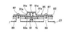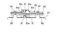 固定支持プレート85には、上方へ向かって屈曲成形された屈曲部91aを有する下向きコ字状の振動緩和屈曲部91が複数設けられている。振動緩和屈曲部91の天井部内側には、前記上位側弾性部材83に設けられた突起体83aが弾接し合う形状となっている。