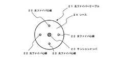 光ファイバケーブルは、複数の光ファイバを集合化させたケーブルであり、日本ではオフィス、マンション等に急速に普及してきている。光ファイバケーブルには、光ファイバが規定以上に伸びるのを防止するため、テンションメンバが用いられている。光ファイバケーブルは、例えば、特許文献1〜8に記載されている。 An optical fiber cable is a cable in which a plurality of optical fibers are assembled, and is rapidly spreading in offices, condominiums, and the like in Japan. In the optical fiber cable, a tension member is used in order to prevent the optical fiber from extending more than specified. The optical fiber cable is described in Patent Documents 1 to 8, for example.