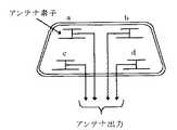 図6は、複数のアンテナの設置方法の一例を示す構成図で、車両の後部ガラスに4本のアンテナを装着(内蔵)した場合の原理図で、アンテナ( a,b ,c ,d)の水平方向の指向性は図7に示すようなそれぞれ異なった向きとなるように設置することが望ましい。尚、本例ではガラスアンテナとしてアンテナを構成したが、ポールアンテナ等を車体やルーフの前後、左右端に設置する方法等も良く用いられる。