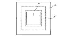以上の構成からなる半導体発光素子1’では、p−電極7’の外縁と環形状の活性層3’の外縁との距離が均等であるので、発光領域Rにおいて通電する電流の電流拡散が均一となる。これに対して、図6に示すように、p−電極7’の外縁と活性層3’の外縁との距離が不均等な場合、電流拡散が不均一になり発光領域(特に、活性層3’の角部)の輝度が低下してしまう。また、図7に示すように、環形状の活性層3’を設けるのではなく、p−電極7’の外縁と環形状の活性層3’の外縁との距離が均等になるように多角形状の活性層3’を形成してもよい。