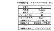 図4において、400は印刷属性付きファイルのフォーマットで、文書データ領域と印刷属性領域とから構成されており、具体的には、文書データ(実画像、解像度、イメージの方向、イメージのサイズ)と印刷属性(8つの印刷属性)から構成される。すなわち、印刷属性付ファイルには、文書データと印刷属性情報が独立している。このファイルからサムネイルを作成する場合、文書データ(実画像、解像度、イメージの方向、イメージのサイズ)から初期サムネイルを作成し、続いて印刷属性に従って、そのサムネイルを加工していくものとする。