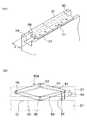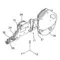 一般に、部品実装装置には多種類の部品が供給されるため、部品実装装置に取り付けられる複数のパーツカセット11同士の間隙は非常に制限される。このため、センサ54が図3(a)に示すような形態でキャリアテープ21からはみ出すように配置されることはスペース的に不利になり得る。図2(b)は、このような場合の解決策の1つを示している。ここではキャリアテープ21が長手方向の軸を中心に約90°捩れ、センサ54が上方から鉛直方向にキャリアテープ21を跨いで切り欠き部51を検出するものとしている。部品実装装置1に装着された状態でパーツカセット11の上方には一般に障害物がないため、このような配置とすることでスペース上の問題を生ずることはない。なお、図示の場合とは逆にキャリアテープ21を逆方向に約90°捩じって切り欠き部51を下方に向け、搬送路30に空けられたピット状溝内で下側からこの切り欠き部51を検出するよう構成することも可能である。図3(a)ではキャリアテープ21を捩るための機構を省略しているが、ガイドローラなどを用いることにより可能である。  In general, since many types of components are supplied to the component mounting apparatus, the gap between the plurality of