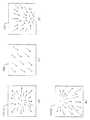図14は、従来のエフェクト画像処理方法の第1の実施例を模式的に示している。前述の板3(図10参照)を用いて「雨」をエフェクトとして表示する場合、図14に示すように、各視点から物体1を捉える仮想カメラ2の前に、エフェクトE01(b),E02,E03,E04を流し込むための板を配置する。図15(A)〜(D)は、エフェクト画面の具体例を示しており、図15(A)の画面E01(a)が、画面の中心部を発生点としてその発生点から放射状に雨が発生する様子を示し、同図(B)の画面E01(b)が、画面中央の上部を発生点としてその発生点から放射状に雨が発生する様子を示している。また、同図(C)の画面E02が、雨が斜めに降っている様子を示し、同図(D)の画面E03が、画面中央の下部を消失点としてその消失点に向けて雨が消失して行く様子を示している。第1の実施例では、図13に示した画像V1、V2、V3又はV4に対して、図15に示したエフェクト用の画像E01(a)、E01(b)、E02又はE03を合成し、図16(A)〜(F)に示すような画面を表示する。例えば、図16(A)に示す画面V1(a)は、図13(A)の画像V1と図15(B)の画像E01(b)とを合成した画像を示している。また、図14中に示すように、V1とV2の間に配置した仮想カメラ2から捉えた物体1に対しては、図17(A)、(B)に示すようなエフェクトを施した画面Vaを表示する。このように、第1の実施例では、仮想カメラ2の前に設けた板状のフレームに該当のエフェクト用画像を貼り付け、主画像と合成してエフェクトを表示するようにしている。