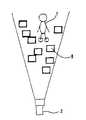 図10は、従来のゲーム装置におけるエフェクト画像の表示方法を模式的に示している。例えば、仮想カメラ2の視野領域において、仮想カメラ2の視点とプレイヤキャラクタ1との間に存在するものを表現する場合、仮想カメラ2の前に、エフェクトを流し込むための板状の二次元フレームから成る板3を設け、その板3にエフェクト用画像を貼り付け、プレイヤキャラクタ1等の主画像と合成してエフェクトを表示するようにしている。あるいは、図11に示すように、仮想カメラ2とプレイヤキャラクタ1との間にエフェクトを投影する小さな板4を多数設けたり、板4を複数枚重ねてエフェクト画像を表示する手法が用いられている。