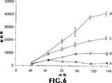 図6は、気道平滑筋細胞増殖に対する血清の効果のグラフを示す。細胞を血清に暴露し、細胞カウントは24時間間隔で行い、結果は各24時間間隔における血清の4濃度の各々における細胞カウントとして表す。血清濃度は以下の通りである:(A)0.25%FBS、(b)2.5%FBS;(C)5.0%FBS;および(D)10.0%FBS。各点は少なくとも5ウェルにおける細胞カウントの平均値+標準誤差を表す。