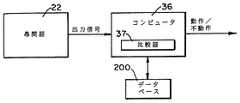 図9および11を参照すれば、タグ付き物品が検知ゾーンに入った時に、物品のタグ10が、呼び掛け器22からの呼び掛け信号に対する応答として信号を出力する。次に、呼び掛け器22がタグ情報を含む信号を出力し、それを、比較器37を備えるコンピュータ36に送る(ステップ130)。コンピュータ36は、タグ情報から一連番号を抽出するか、あるいは呼び掛け器出力信号から一連番号を得る(ステップ132)。この例では、ICメモリーに記憶された識別情報は、タグの「一連番号」として言及される。コンピュータ36はデータベース200にアクセスし、比較器37を用いてデータベース全体から、呼び掛けされたタグ10の一連番号に一致する一連番号204を探索する(ステップ134)。一致が見出されない場合には、コンピュータ36は「不動作」信号を出力する。