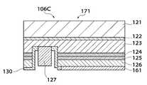 図2は、本発明において用いることができる発光素子の要部構成を模式的に表す断面図である。同図に例示した発光素子106Aは、サファイア基板121上にAlNからなるバッファ層122、n型GaNコンタクト層123、発光層を含む窒化物半導体多層膜124、p型GaAlNクラッド層125、p型GaNコンタクト層126が順次形成されている。
